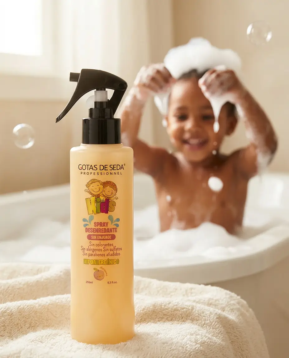 Spray desenredante de uso diario para el cabello de las niñas. Su fórmula sin enjuague facilita el peinado sin tirones, reduce los enredos y deja el cabello suave, brillante y con un aroma delicado.